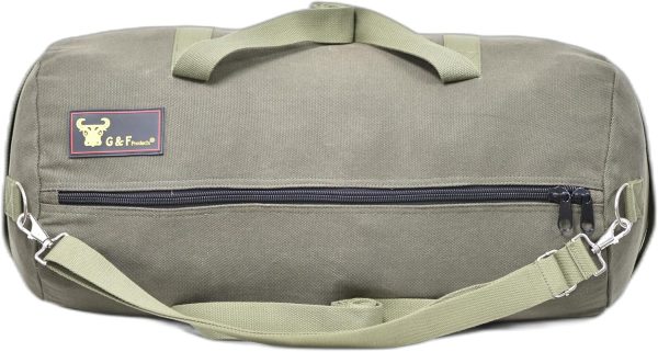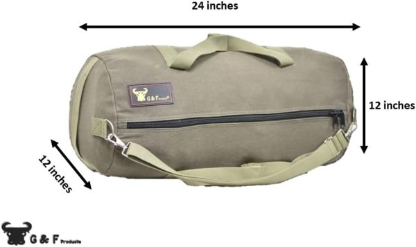 Waxed Canvas All Purpose Military Style Duffle Bag, Water-Resistant, Adjustable Strap, Fully Lined, Double Zipper Closure, heavy Duty, Olive Green